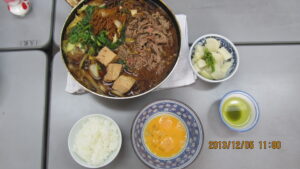 12/5(木) 調理実習ですき焼き 調理実習のすきやき。やればできます。いつもやろうね。