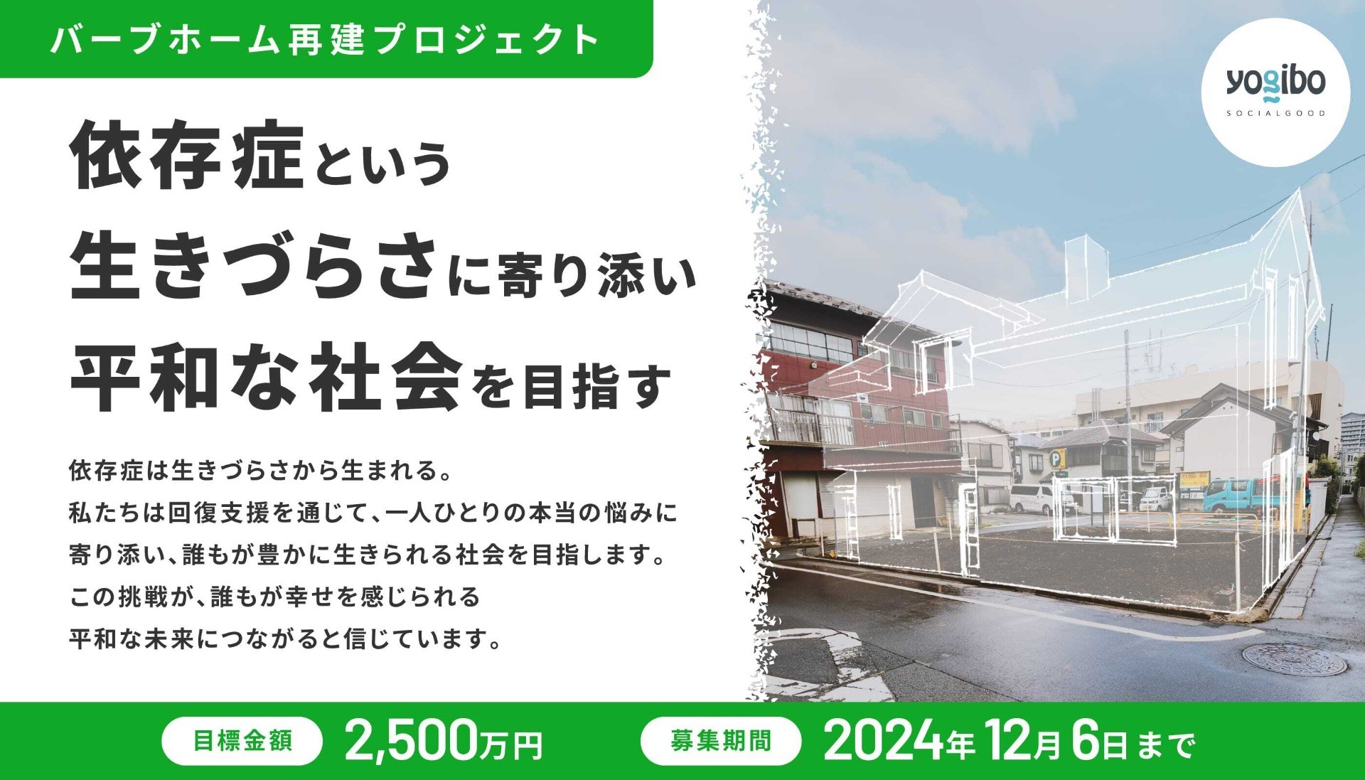 バーブホームを再建し、もう一度同じ場所で依存症から回復を目指す人たちを支援するために、私たちジャパンマックは、この度クラウドファンディングプロジェクトに挑戦することを決意しました。